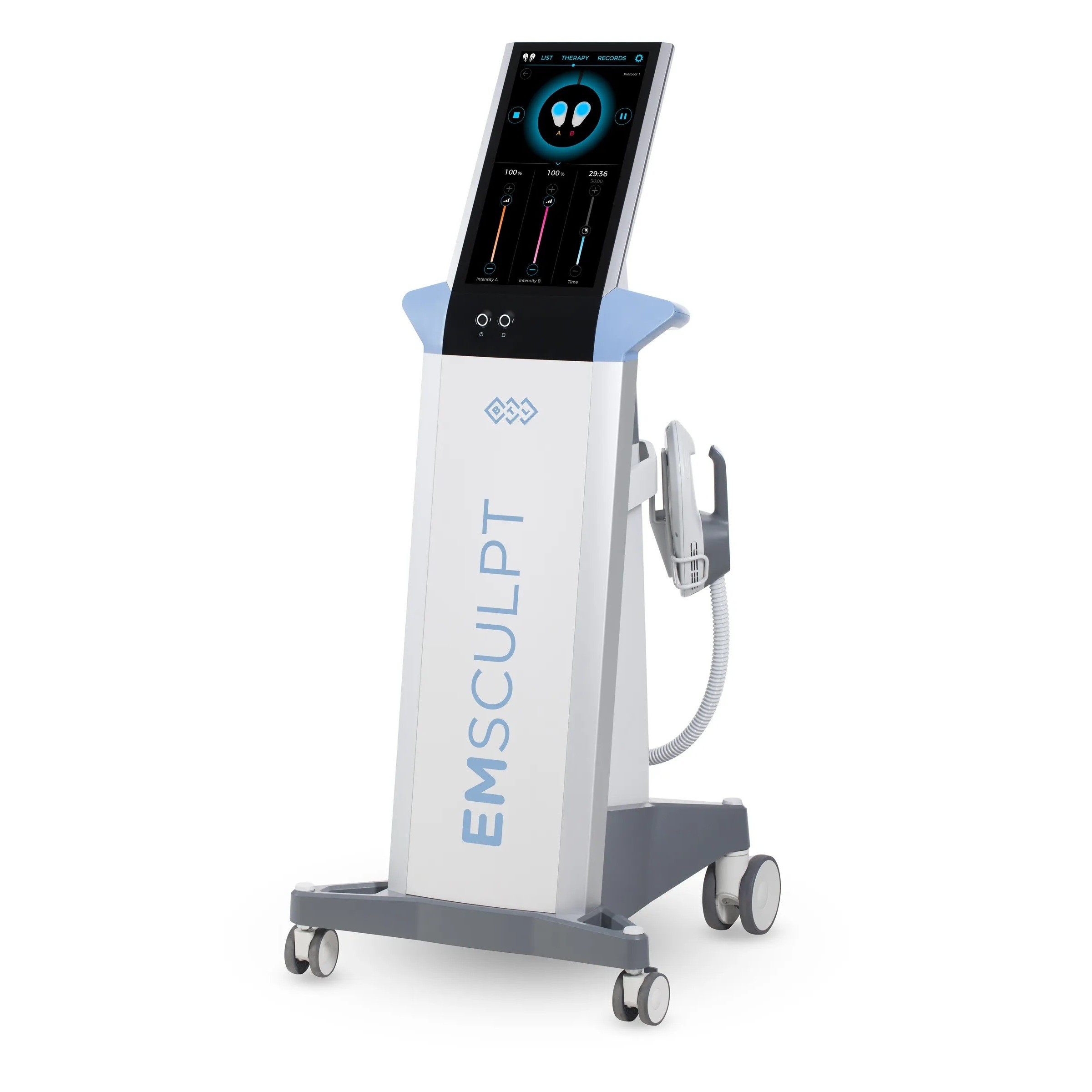 An electromagnetic stimulation system designed to build muscle and burn fat at the same time. It helps tone and shape the body without strenuous workouts.